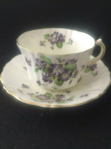 VINTAGE OLD ROYAL BONE CHINA ENGLAND TEA CUP & SAUCER PURPLE FLOWERS 2986
