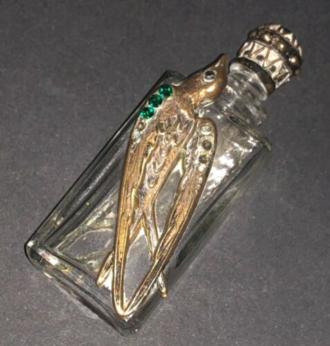 Title (ebay affiliate link): FINE VINTAGE CZECH GLASS GILT METAL JEWELED BIRT FIGURE SCENT PERFUME BOTTLE