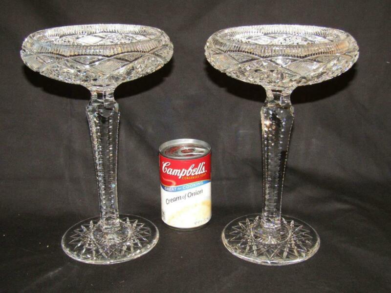 PAIR EXQUISITE AMERICAN BRILLIANT CUT GLASS 10" COMPOTES - MINT!