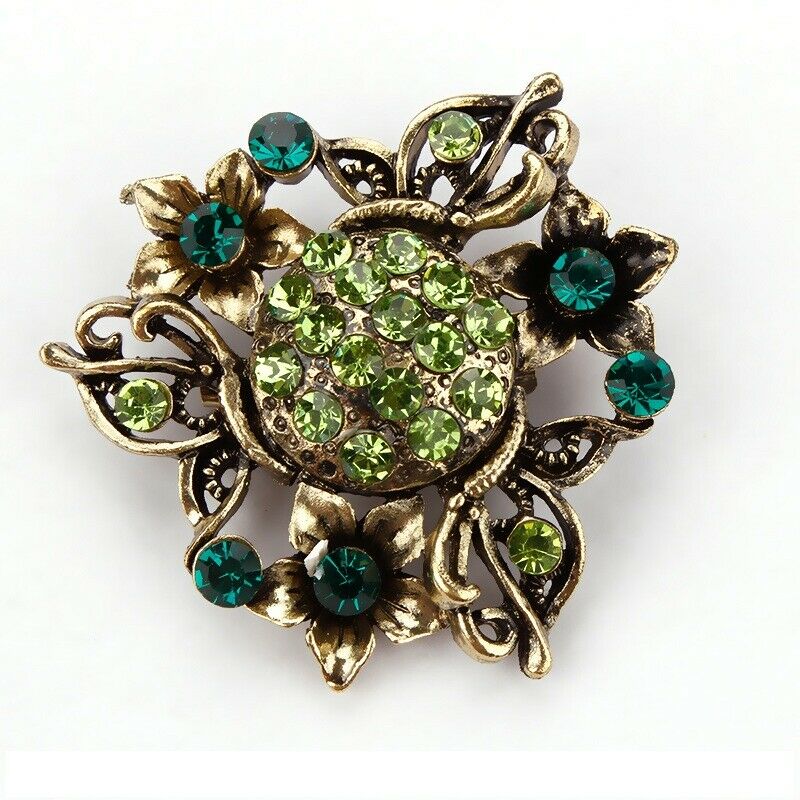Antique Green Blue Floral Scarf Pin and Brooch