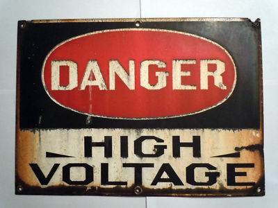 DANGER HIGH VOLTAGE SIGN HEAVY STEEL.