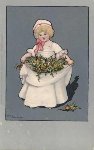 Ethel Parkinson Pretty girl in white dress carried holly in her apron