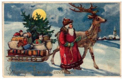 Title (ebay affiliate link): Santa Claus in red robe and Rudolph deer Latvia Lettland PC 1930s