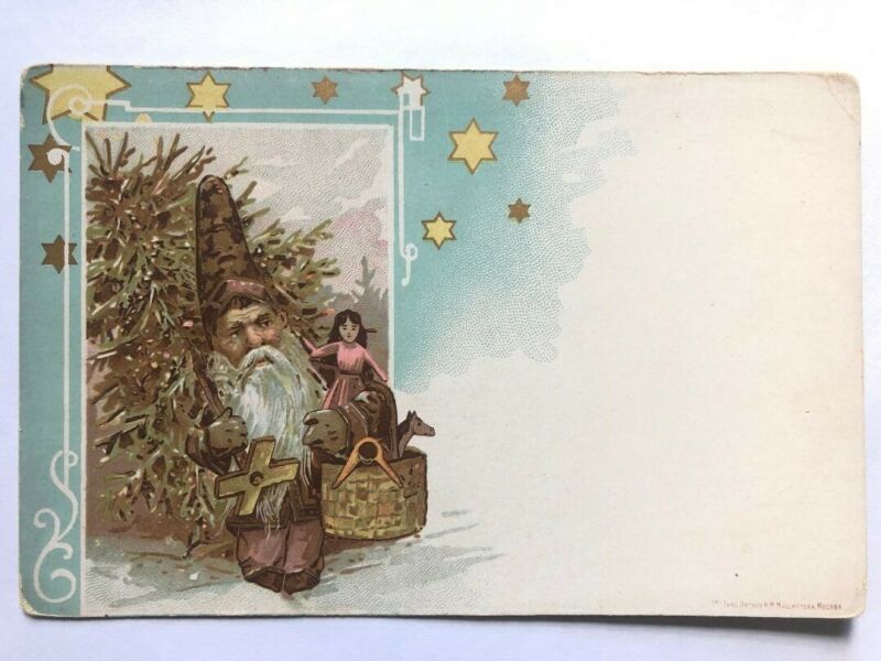 Title (ebay affiliate link): OLD SANTA POSTCARD, BROWN ROBE, GOLD STARS, UNDIVIDED BACK, RUSSIAN