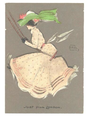 Hamilton King Just from London Girl on Swing Small Antique Print