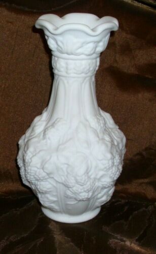 Title (ebay affiliate link): Vintage Glass White Frosted Milk Glass Vase Imperial Loganberry & Vines 10 1/2"