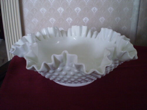 Title (ebay affiliate link): LARGE FENTON HOBNAIL MILKGLASS RUFFLED DOUBLE CRIMPED BOWL / DISH - MARKED