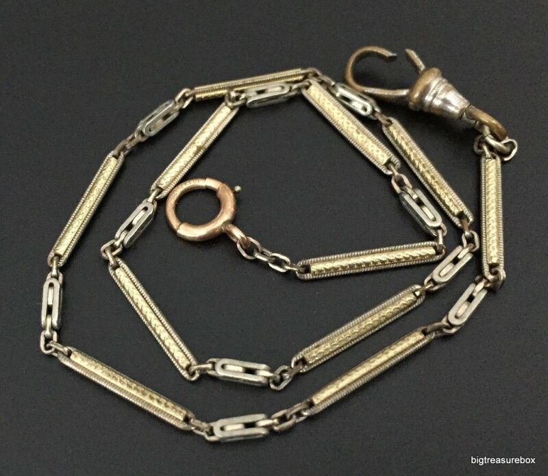 Vtg ANTIQUE Art Deco or Victorian Pocket Watch Fob Chain Silver tone lot w