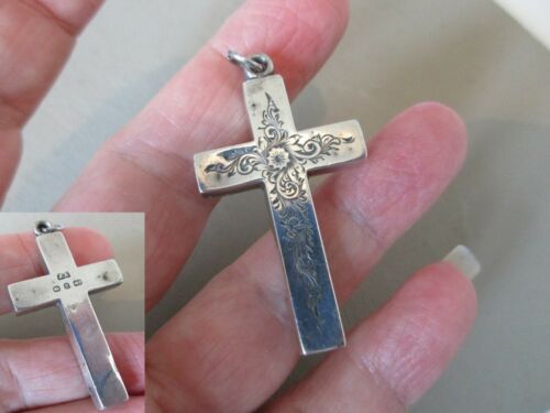 ANTIQUE VINTAGE VICTORIAN LARGE STERLING SILVER ART NOUVEAU CROSS FOB PENDANT UK