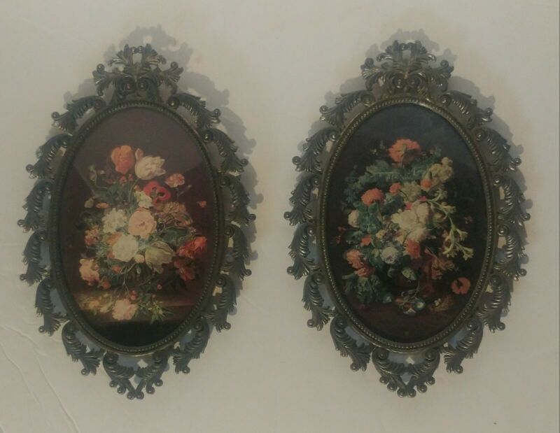 Title (ebay affiliate link): 2 Vintage Victorian Metal Oval Pictures w Metal Frames - Made In Italy - Nice