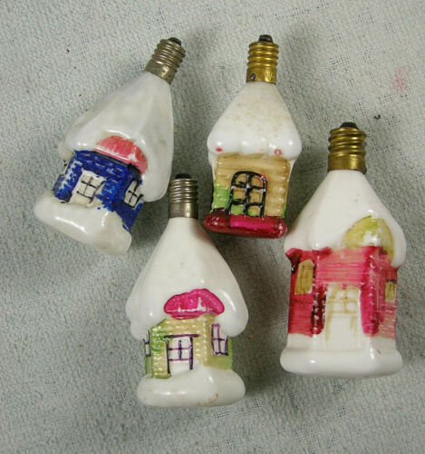 Title (ebay affiliate link): (4) Antique Christmas Figural Glass Tree Light Bulbs - Snow Covered Houses