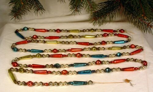 Antique 1930''s Mercury Glass Beads Christmas Feather Tree Garland 98 Inch Strand