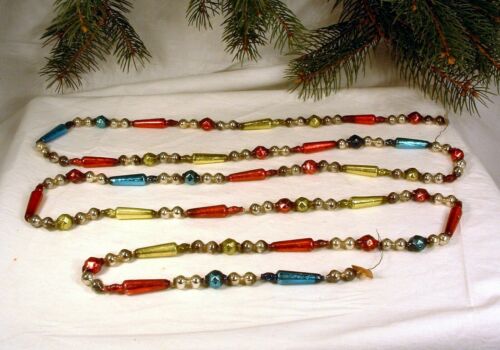 Antique 1930''s Mercury Glass Beads Christmas Feather Tree Garland 80 Inch Strand
