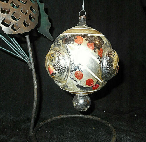 ANTIQUE GERMAN MERCURY GLASS JUMBO SPACESHIP CHRISTMAS ORNAMENT~5"L