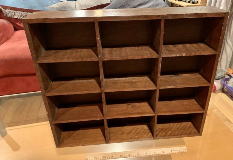 Vtg 12 Compartment Brown Wood Freestanding Wall Mounted, Display Shelf Shelving