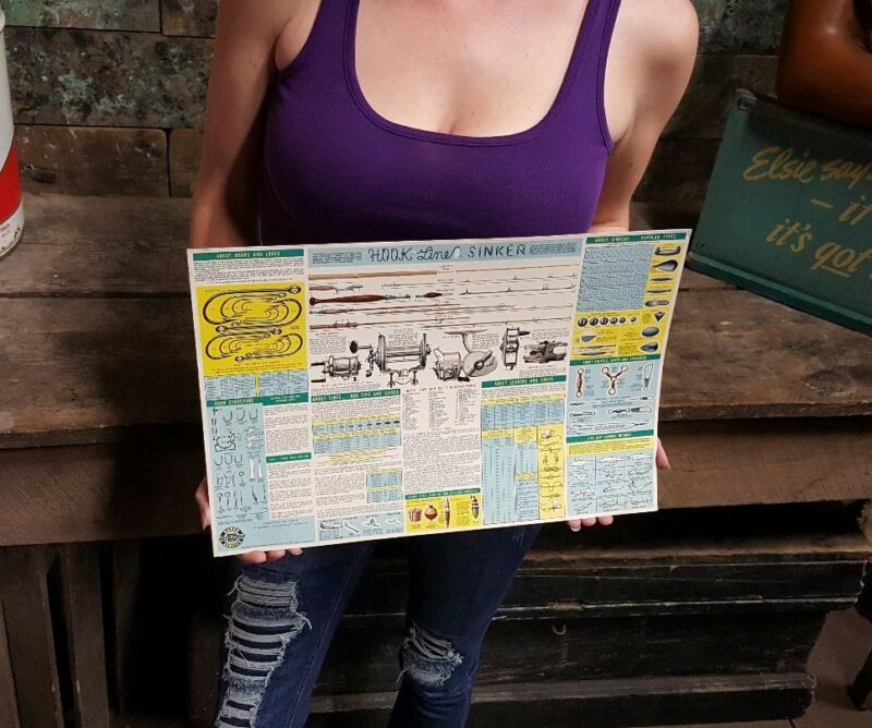 Title (ebay affiliate link): Vintage 1960 Chevrolet Super Service Poster Chart Fishing Hook Line Sinker
