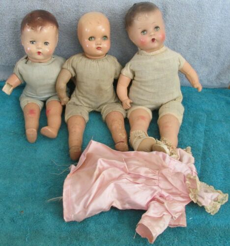 Title (ebay affiliate link): 3 Antique Composition Head/Limbs Dolls~Blue Tin Eyes~Some TLC~15" & 16" Long~SEE