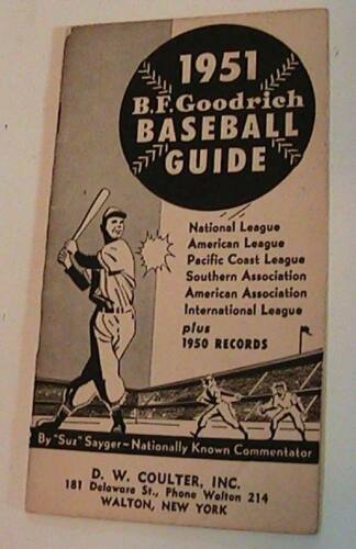 Title (ebay affiliate link): 1951 B F Goodrich MLB Baseball guide & schedule by Suz Sayger, tire ads cool!