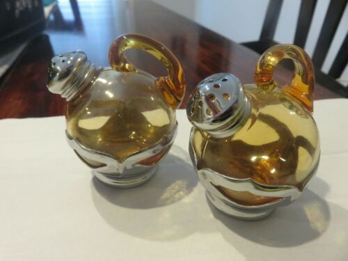 Title (ebay affiliate link): Vintage Farber Bros Amber Glass Chrome Salt And Pepper Shakers