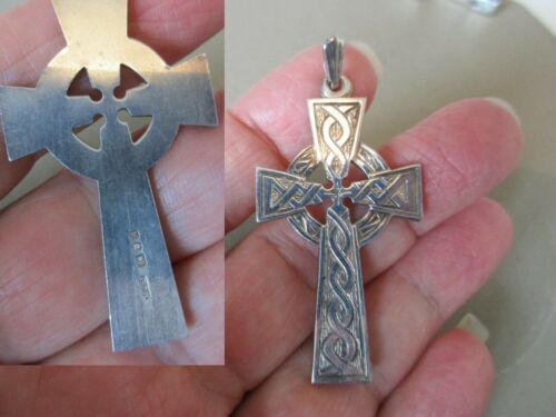 ANTIQUE VINTAGE LARGE ENGLISH STERLING SILVER CELTIC CROSS FOB CHARM PENDANT 925