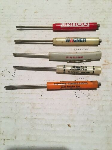 Nice Lot of 5 Small Vintage Advertising Screwdrivers. 4 Slotted and 1 Phillips.