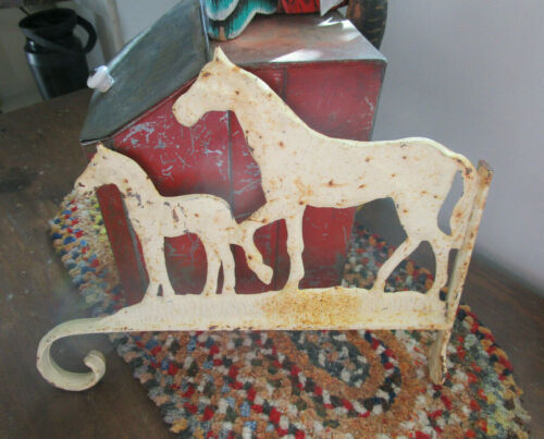 Title (ebay affiliate link): EARLY CAST IRON HORSE RANCH FENCE POST GATE SIGN~ORIG CREAM PAINT PATINA~aafa