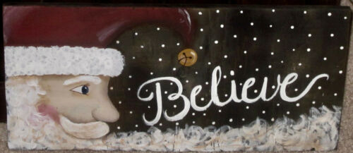*~*PRIMITIVE*~* HP FOLK ART PRIM SANTA *~* BELIEVE *~* BOARD