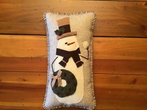 Title (ebay affiliate link): PRIMITIVE CHRISTMAS PILLOW WOOL FELT SNOWMAN WITH STOVEPIPE HAT AND WREATH