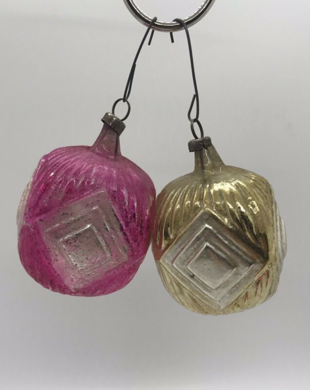 ANTIQUE VINTAGE LOT OF 2 MERCURY HAND BLOWN GLASS SQUARE CHRISTMAS ORNAMENTS