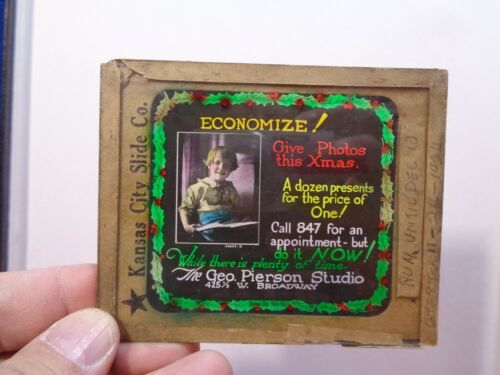 ANTIQUE MAGIC LANTERN GLASS SLIDE #4 CHRISTMAS PHOTO ADVERTISING