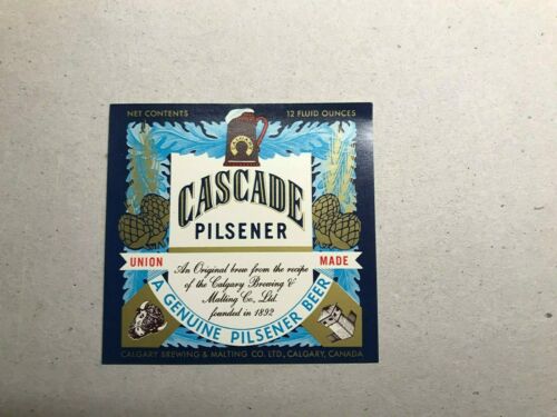 Title (ebay affiliate link): Vintage Canadian beer label - Calgary Brewing & Malting - Cascade Pilsener