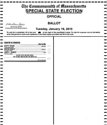 MA Special State Election Ballot Scott Brown 1/19/10
