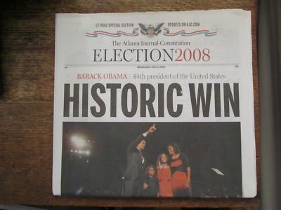 Title (ebay affiliate link): Atlanta Journal November 5, 2008, Barack Obama Win
