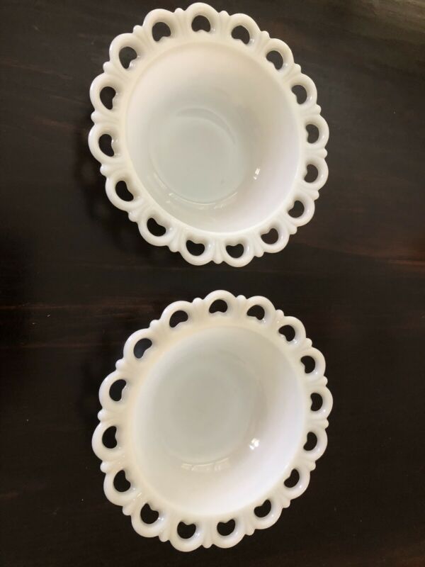 Pr of Lace Edge Milk Glass Anchor Hocking Old Colony Vegetable Serving Bowl 9.5"