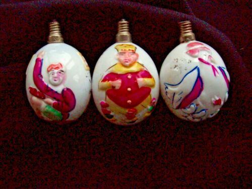 Lot of 3 VINTAGE ANTIQUE MILK GLASS CHRISTMAS TREE LIGHT BULB ORNAMENTS Japan