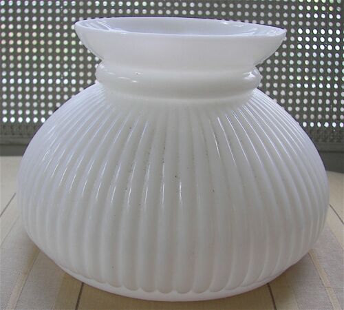 Vintage Antique Ribbed Milk Glass Hurricane Oil Lamp Shade 6 3/4" Fitter