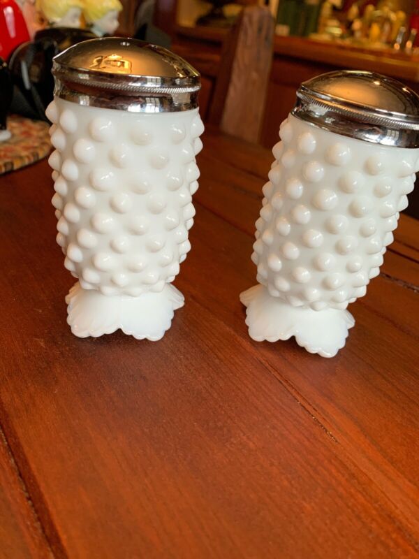 Title (ebay affiliate link): Vintage White Hobnail Milk Glass Footed Salt & Pepper Shaker Set