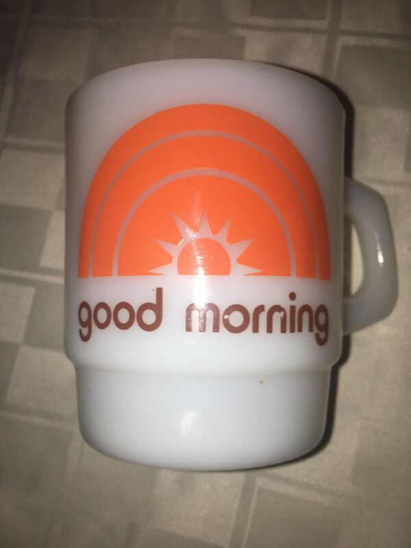 Title (ebay affiliate link): Anchor Hocking Fire King Burger Queen Good Morning Mug White Milk Glass EUC
