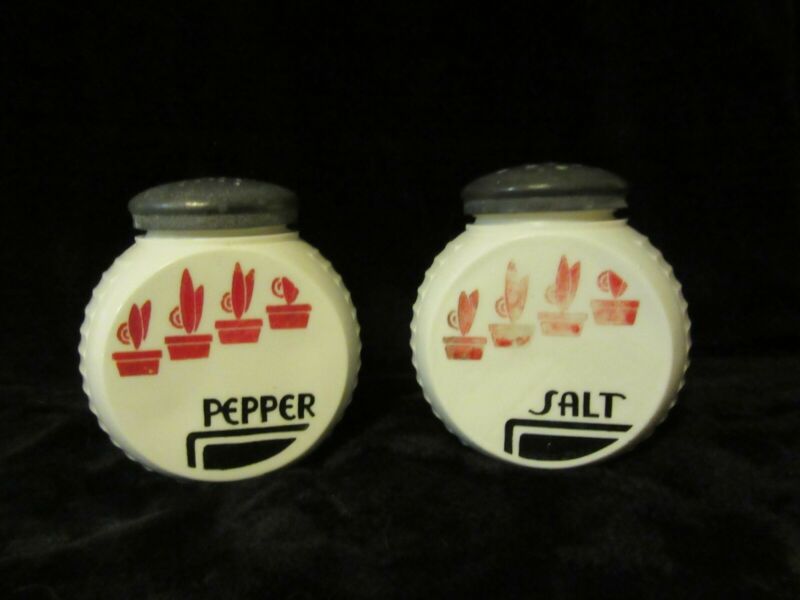 Vintage Fire King Milk Glass Vitrock Art Deco Salt And Pepper Shaker Set 1940''s