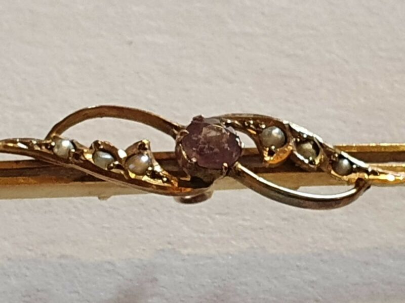 Title (ebay affiliate link): Antique Victorian 9ct Gold Hallmarked Amethyst and Pearl Bar Brooch Lovely Piece
