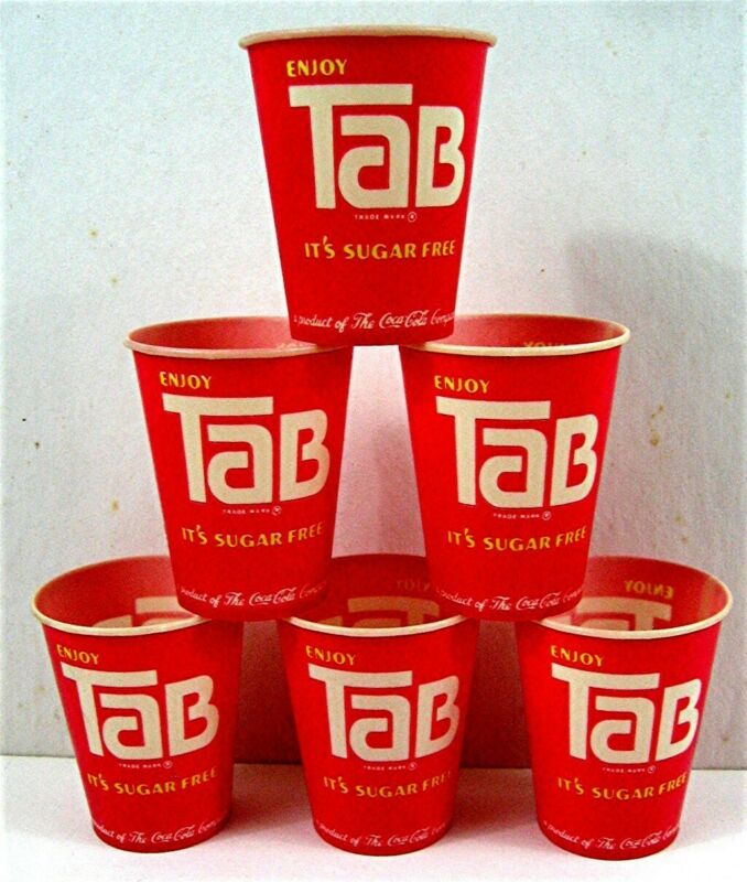Title (ebay affiliate link): 6 Enjoy Tab Sugar Free Sample 4 oz Waxed Soda Cups Coca Cola Co Old Store Stock