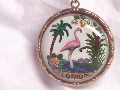 Vintage Florida Acrylic Pink Flamingo Key Chain