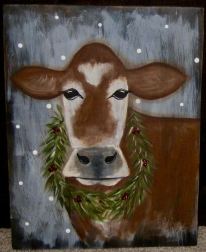 Title (ebay affiliate link): *~*PRIMITIVE*~* HP FOLK ART PRIM HOLIDAY COW *~* WREATH *~* BOARD