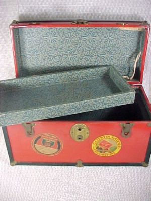 Title (ebay affiliate link): Vintage Child Doll Steamer Trunk Travel Sticker RR Ship