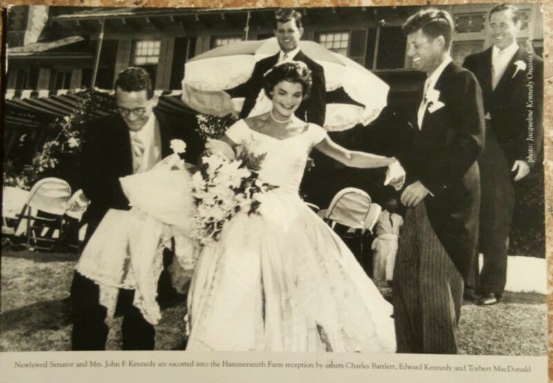 Title (ebay affiliate link): Postcard JFK / Jacqueline Wedding Day Photo. Invitation mailing to exhibit