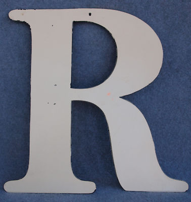Large vintage enamel tin letter R Sign display COOL!