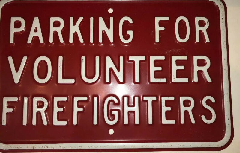 Title (ebay affiliate link): Vintage Original PARKING FOR VOLUNTEER FIREFIGHTERS Metal Red Sign 12" x 18"