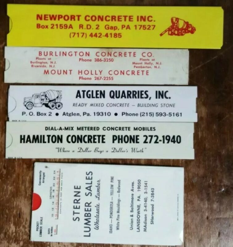 Title (ebay affiliate link): VINTAGE LOT OF 5 ADVERTISING RULERS CONCRETE/lUNBER CO OF PA/NJ