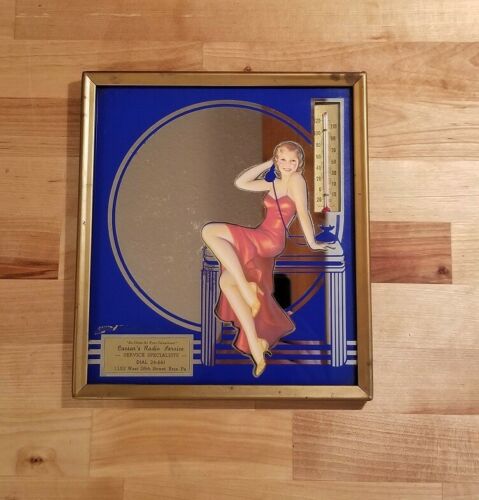 Vintage Pin Up Advertising Thermometer Mirror ERIE PA