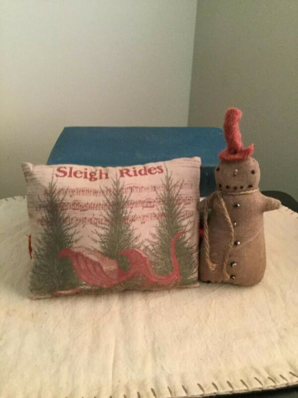 Title (ebay affiliate link): PRIMITIVE HANDMADE CLOTH SNOWMAN WITH SLEIGH RIDES PILLOW - TFC FOLKART